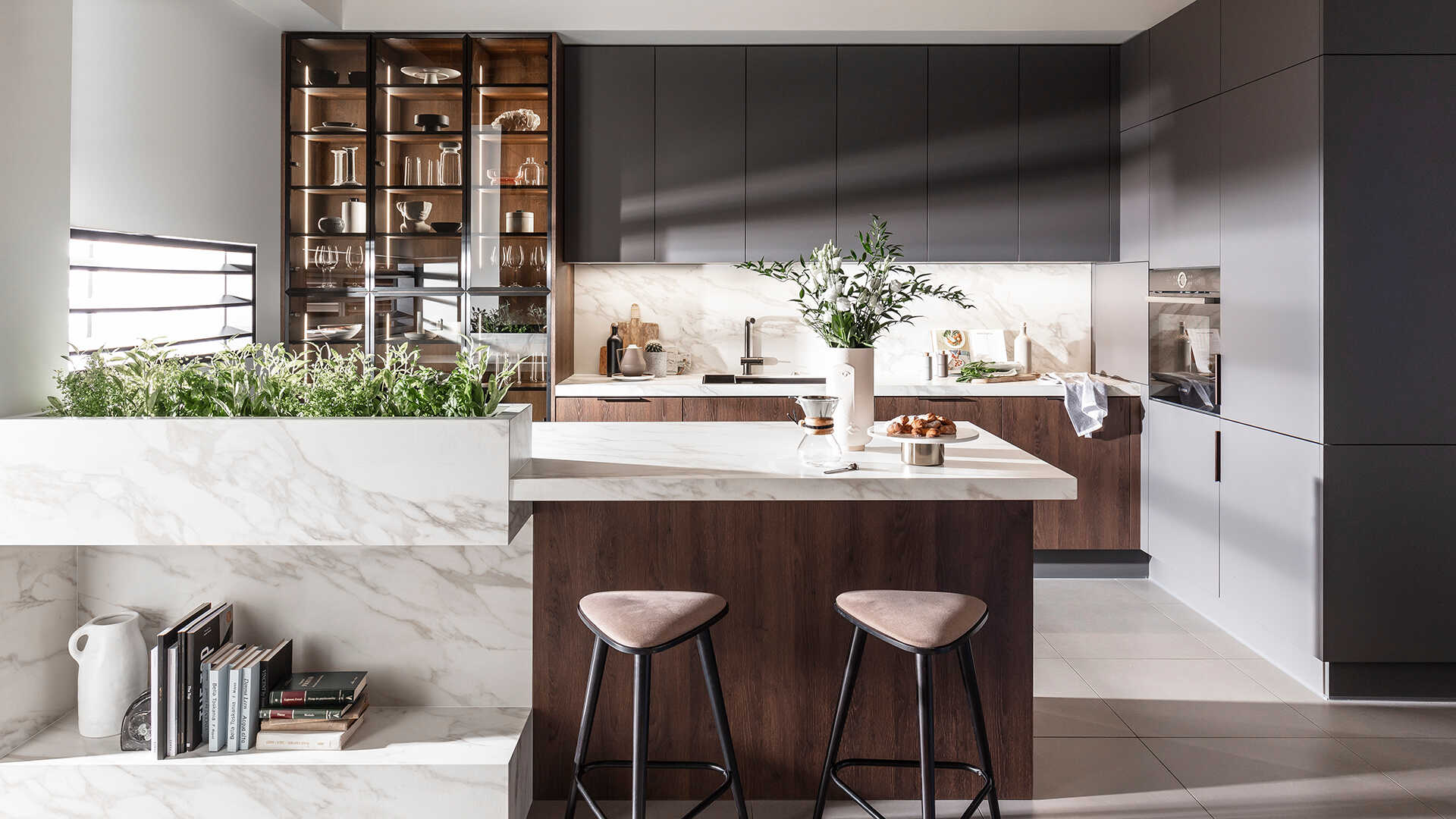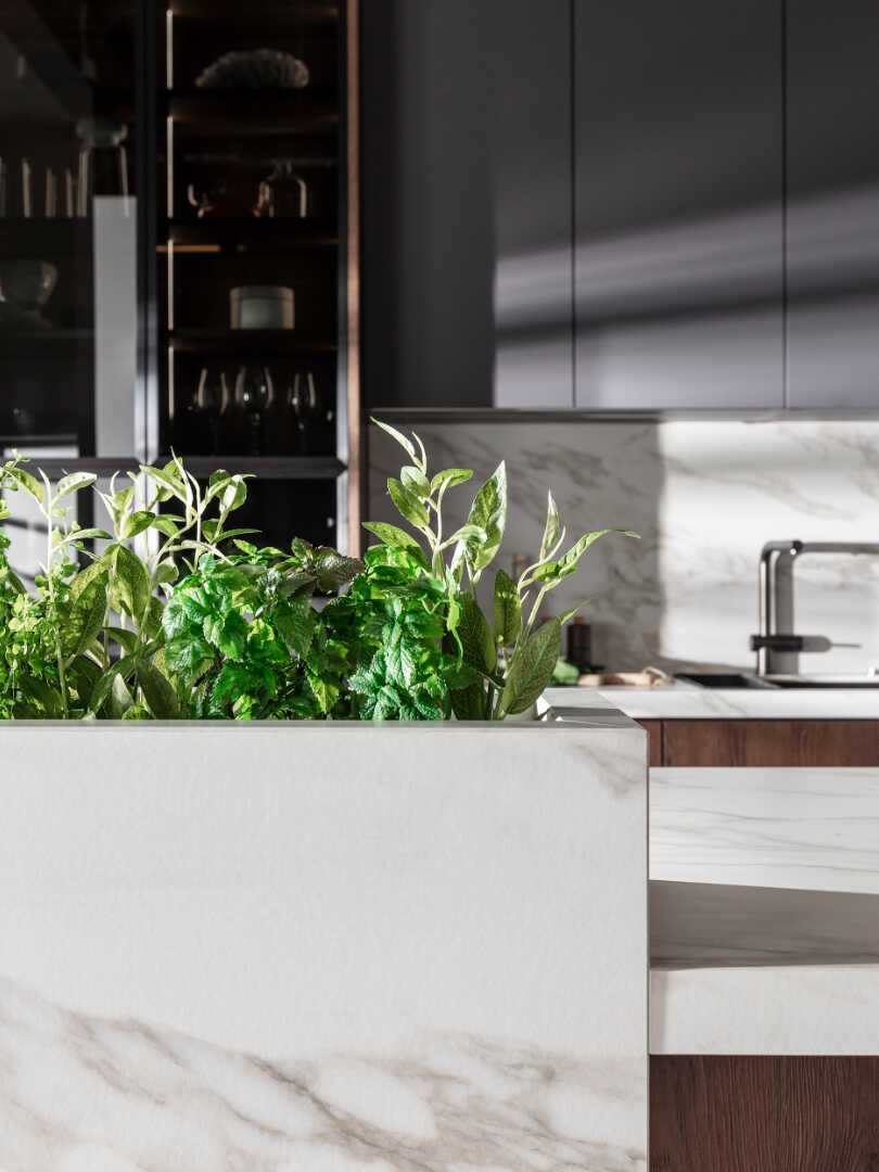 zwraca niecodzienna bryła wyspy, w której znalazło się miejsce na powiew natury, a całość