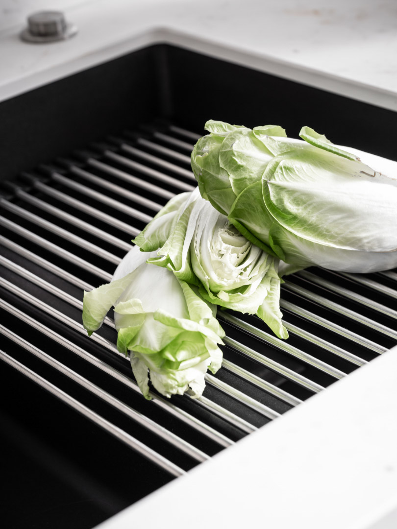 Kamienny blat w jasnych barwach, rozświetla całą powierzchnię roboczą.