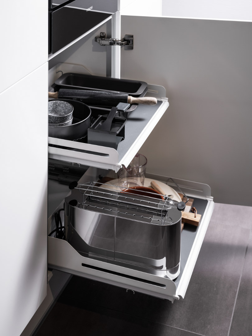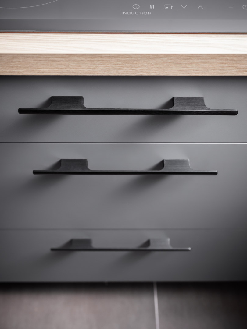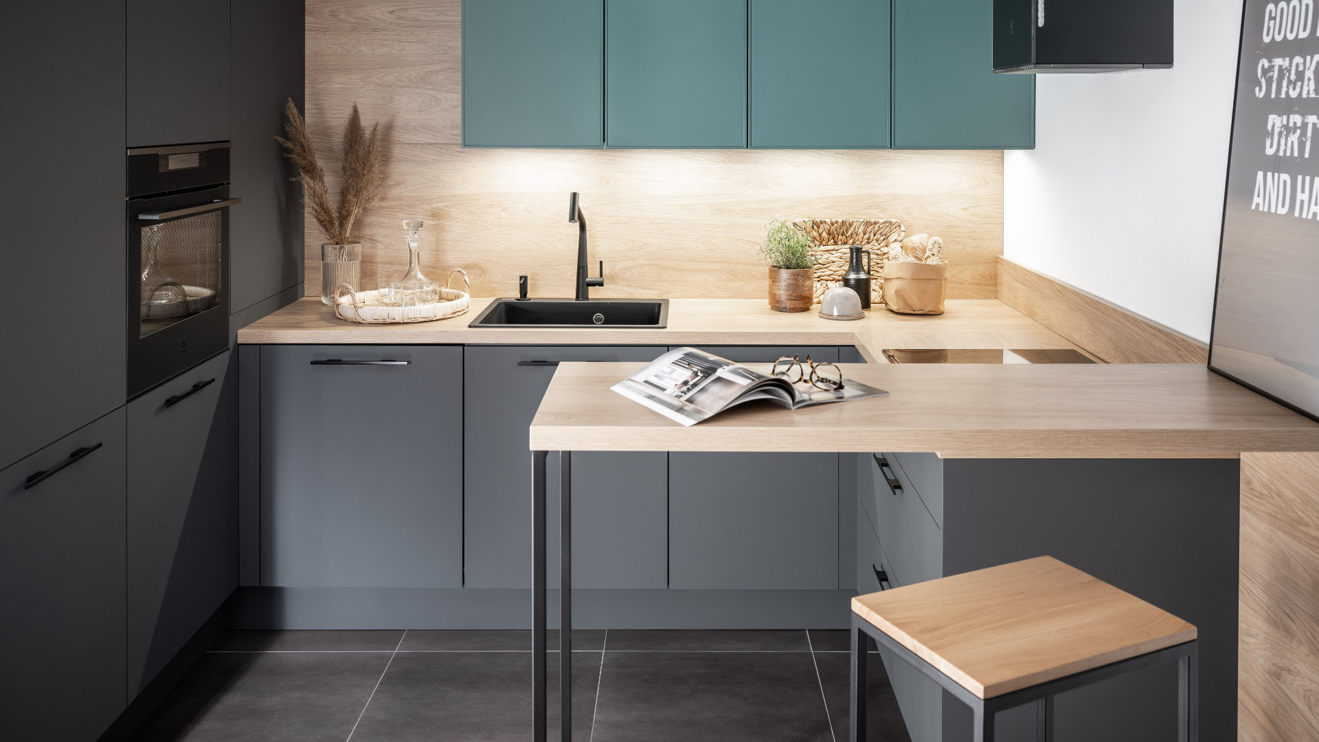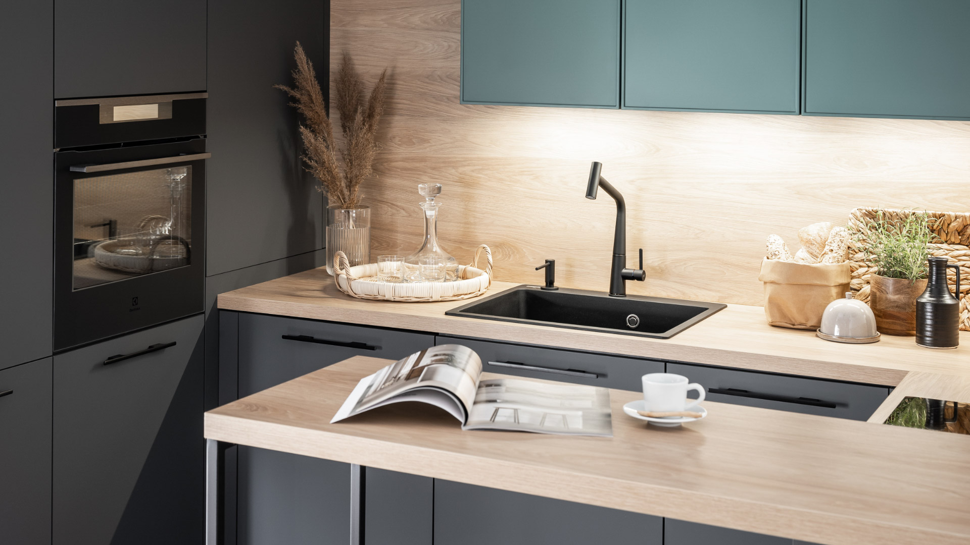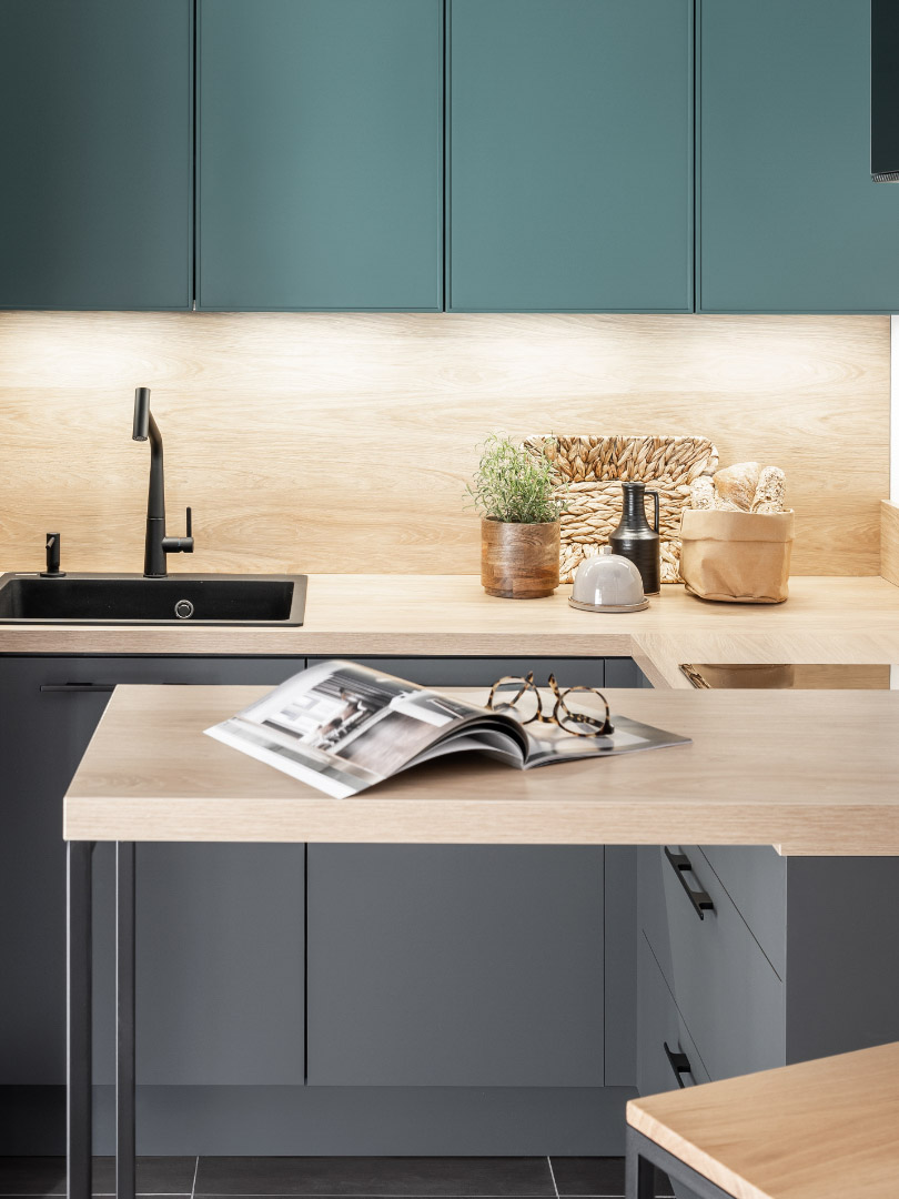 Prosta – ale złożona. Mała – lecz pojemna. Tak, w największym skrócie można by opisać zestaw Turyn. Proste fronty lakierowane w delikatnych odcieniach pasteli wraz z ciepłym drewnianym blatem, skutecznie rozświetlają całe pomieszczenie, nadając mu wdzięku, a doskonale wyposażone szafki, pomieszczą wszystko, czego Ci w kuchni potrzeba.