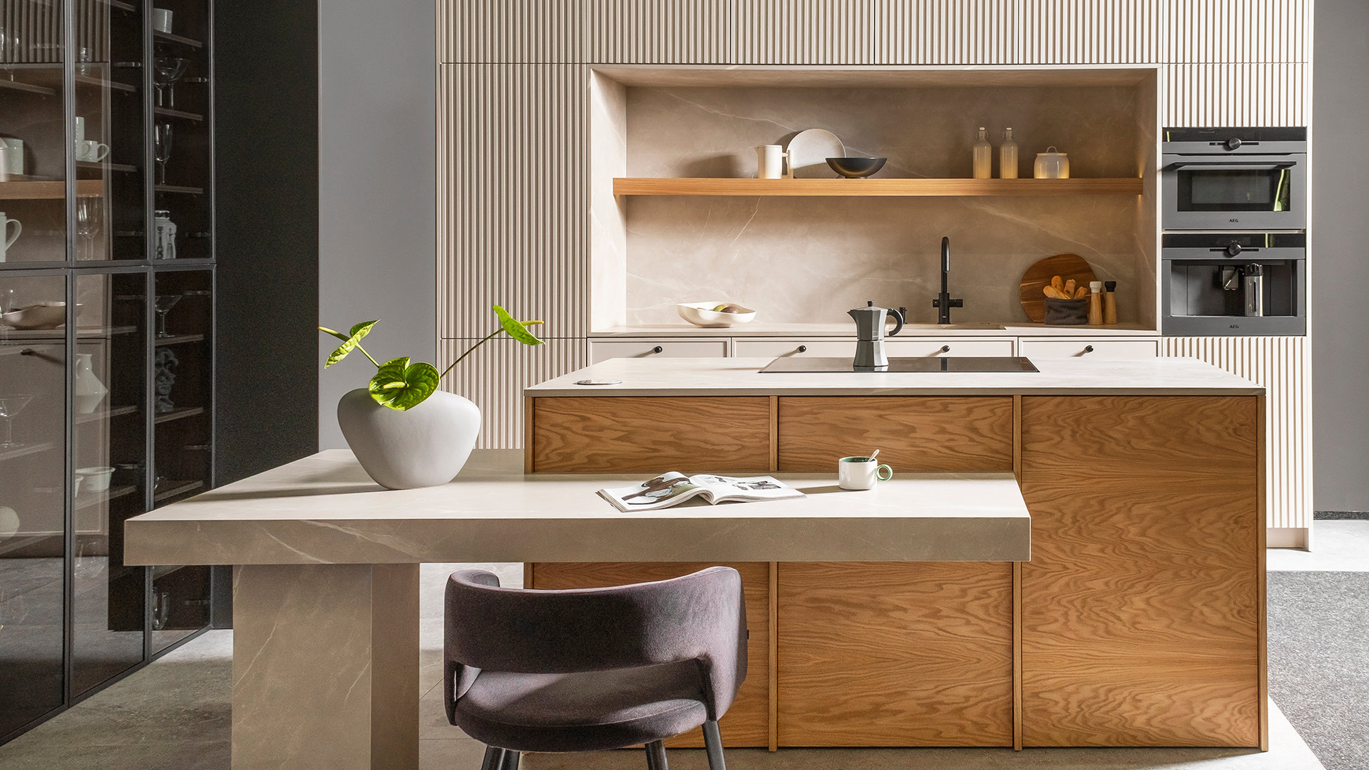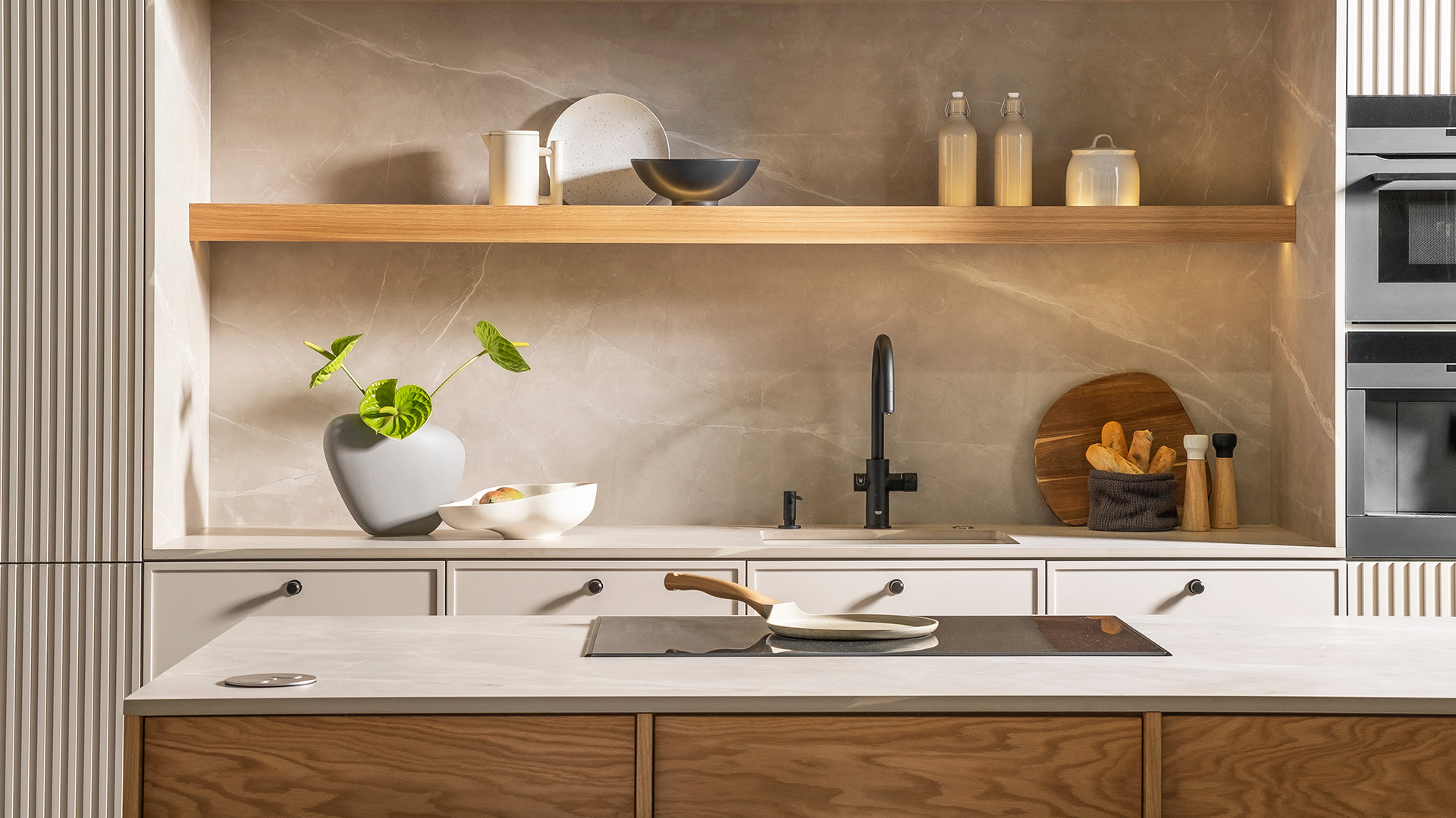 Positano Arezzo to połączenie funkcjonalności z elegancją. Jasne, pastelowe tony sprawiają, że przestrzeń wydaje się większa i bardziej przyjazna, natomiast delikatne odcienie ryflowanych frontów dodają wnętrzu nietuzinkowego charakteru.